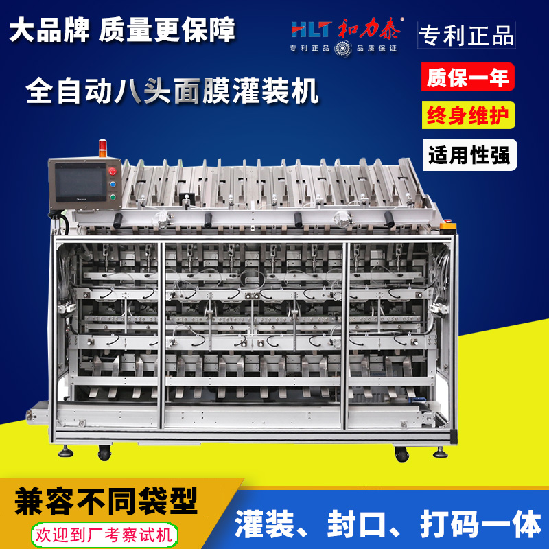 和力泰面膜灌裝機又分四頭面膜灌裝機、六頭面膜灌裝機、八頭面膜灌裝機、十頭面膜灌裝機、雙腔面膜灌裝機、三部曲面膜灌裝機、異型面膜袋灌裝機,高配定制面膜灌裝設備;