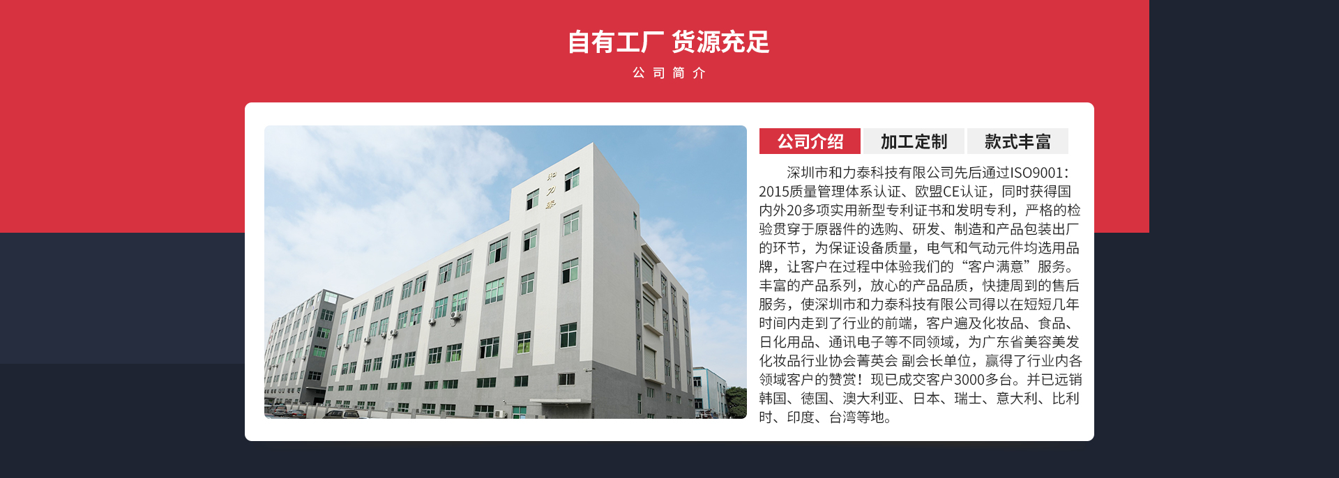 第四:優(yōu)質(zhì)的客戶資源,化妝品行業(yè)經(jīng)過這兩年也逐步分化,好的企業(yè)越來越好,單越來越多,做的品質(zhì)也越來越高端,我們的設備是化妝品設備行業(yè)的首選設備。