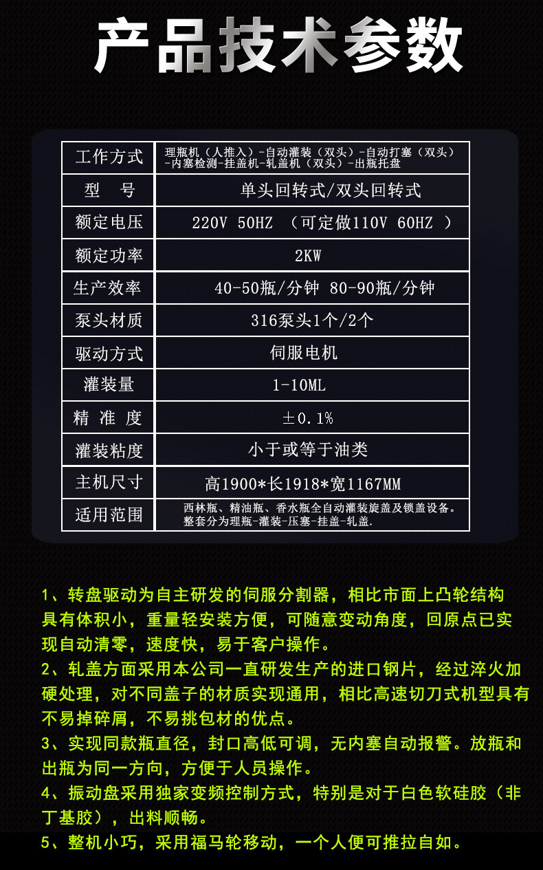 泵體 | 活塞泵/磁力泵/蠕動泵 | 灌裝精度 | ±0.1g |